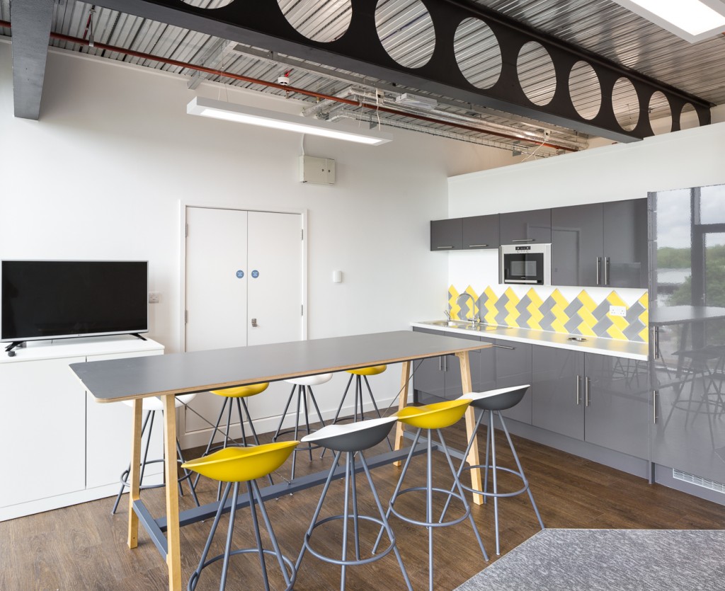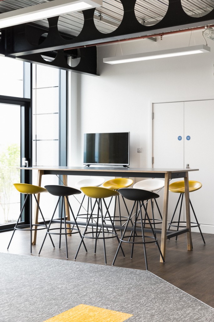 Starting with an empty shell we provided a complete interior fit out solution including electrical, data, carpetting and M&E Works. A kitchen area was provided was well as a long run of storagewall. Loose furniture comprised of Senators Chemistry bench desking and Allermuir Silta tables and JoJo stools.