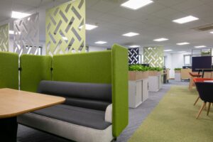 You want to avoid glares too, so think about fixtures, screens and office equipment that may affect your staff in relation to health and safety. If you have plenty of natural lighting, you can afford to add some darker colours, but still remember to mix light and dark, especially if you have small windows or an office that doesn’t get too much light in.